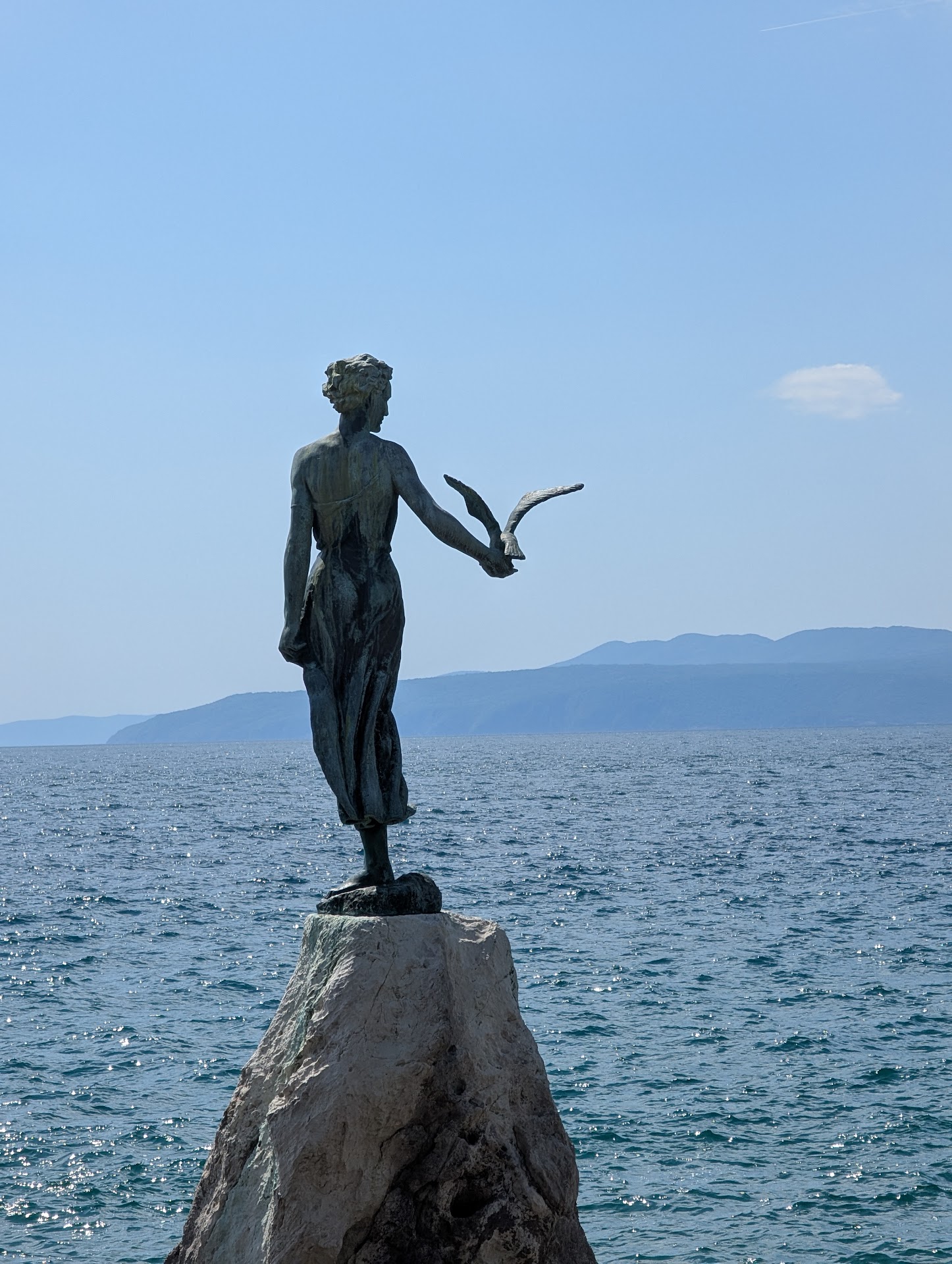 Read moreThe story of the Maiden with the Seagullactually begins in 1891, during Opatija’s tourist boom, when the unfortunate count Arthur Kesselstadt and his wife, countess Fries, fell victim to a raging storm not far from the rocks where the maiden now stands.