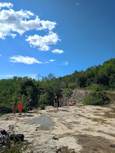 We are back here after four years. Four years ago, my son jumped from the overhang into the water at the age of 8, but my daughter did not dare to, she was 9 at the time. This year both jumped numerous times. From the parking lot it is a few hundred meters to the Krov. There is a path. We decided to be adventurous and slipped into the river at the parking lot, walking, swimming and crawling downstream to the Krov. The river is great for building small dams with the kids. In the pond below the overhang a turtle was swimming. We spent the entire afternoon playing in the water and looking at jumpers and at hesitating nervous kids and even adults. I saw a sign that ice cream is sold. There is lots of space to lie down in the sun, but places with shade are very limited. The water of the river is typically very warm and comfortable. Submerged rock can be very slippery. Water shoes are strongly...