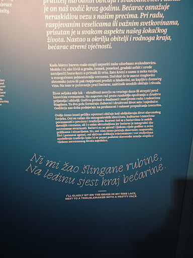 Read moreOduševljen sam. Odličan koncept, izvrstan postav, interaktivno, zabavno i poučno. Nadmašio je sva moja očekivanja. Posjetitelj može vidjeti skoro sve što i u tipičnom etnografskom muzeju u regiji, ali je to prikazano na inovativan i zanimljiv način. Bećarac je prikazan kao neizostavan aspekt šokačkog života, prožet kroz slavonske običaje. Ugodan i moderan ambijent. Mnoštvo atrakcija: materijalnih i nematerijalnih i za djecu. Za detaljno razgledavanje potrebno je izdvojiti min 45 minuta. Definitivno muzej vrijedan posjete. Imam samo riječi pohvale za ovaj muzej, bravo. Svrstavam ga u TOP 5 muzeja koje sam obišao u Hrvatskoj. Ljudi, ovo morate posjetiti. Bravo,...