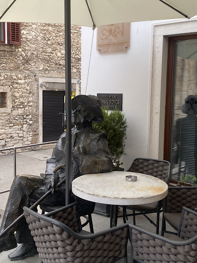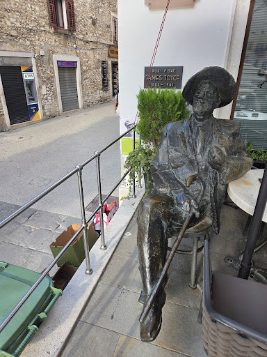 JAMES JOYCE – with full name James Augustine Aloysius Joyce, Irish poet, short story writer and novelist, is one of the greatest writers of the 20th century and pioneer of free written expression. Joyce is certainly most famous for his innovative modern prose style, particulary the narrative technique known as the stream of consciousness. He was born in Dublin (Ireland) in 1882, and died in Zuerich (Switzerland) in 1941. His most renowned works are the short stories “Dubliners”, the novels “A Portrait of the Artist as a Young Man”, “Ulysses”, and “Finnegans Wake”, and the collection of poetry “Chamber Music”. The memory of James Joyce in Pula is breathed near the old Roman Arch of the Sergi at the Portarata Square in the coffe bar “Uliks” (Ulysses), just a few steps from the memorial tablet placed on the building where James Joyce taught the English language. Today, the bronze James Joyce is sitting by the table at the small terrace of Uliks coffee bar, waiting for the ordered espresso or a glass of Istrian Terran, having a break after strolling Pula at the start of a new century… James Joyce has been sculptured in bronze by Mate Čvrljak, the sculptorfrom Labin and a representative of the contemporary Croatian sculptural arts. In the tourist town with the magnificient amphitheatre Arena, taking a photograph with Joyce in Pula is a part of everyday occurence...