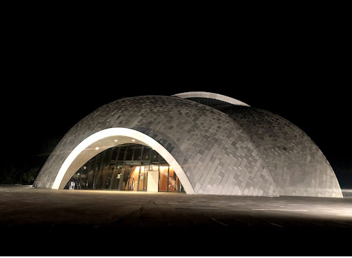 The center has four levels: a gallery, ground floor and two floors, the facilities in the center are congress center, restaurant, apartments, guest rooms, and an underground car park. This is a building of high international artistic relevance designed by the famous late sculptor Dušan Džamonja, in collaboration with architects Darko Vlahović and Branko Vučinović.The sculptor created a miniature model of the mosque, reflecting his well-known abstract sculptures. Later, the architects have undertaken the task to implement this conceptual idea in order to achieve the superior aesthetics of the project. The successful 'playing' with basic geometric shapes led to the fact that the building is considered more as a functional sculpture, intended for culture and religion, rather than the usual architectural building."