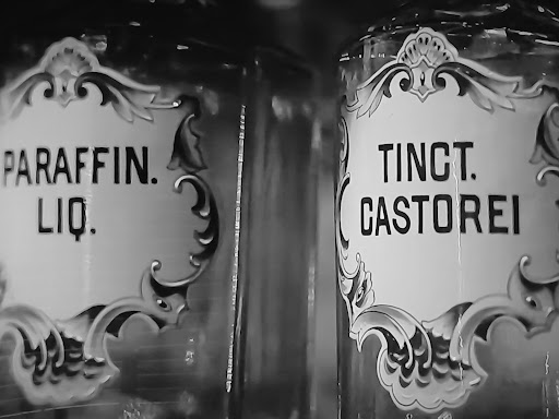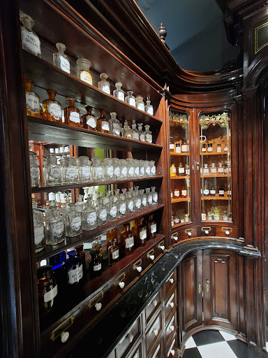 The interior is tipical for old farmacies, even the floor is from the right period.