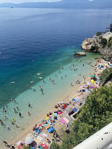 Read moreA short review of the beach: beauty - 5/5 (cool views of Krk, Cres and Istria, the water looks beautiful from afar). Infrastructure 4/5 shower, changing room, toilet (although it’s 82 steps up from the beach), bar. The changing room and bar are only open during the season. Beach cleanliness 3/5. garbage comes across. The purity of the water is 1/5 a nightmare, there is a film of unknown origin on the water, apparently due to the presence of a nearby cargo port. (I hope it will be visible in the video). The amount of space is 1/5, it is very difficult to find a free space...