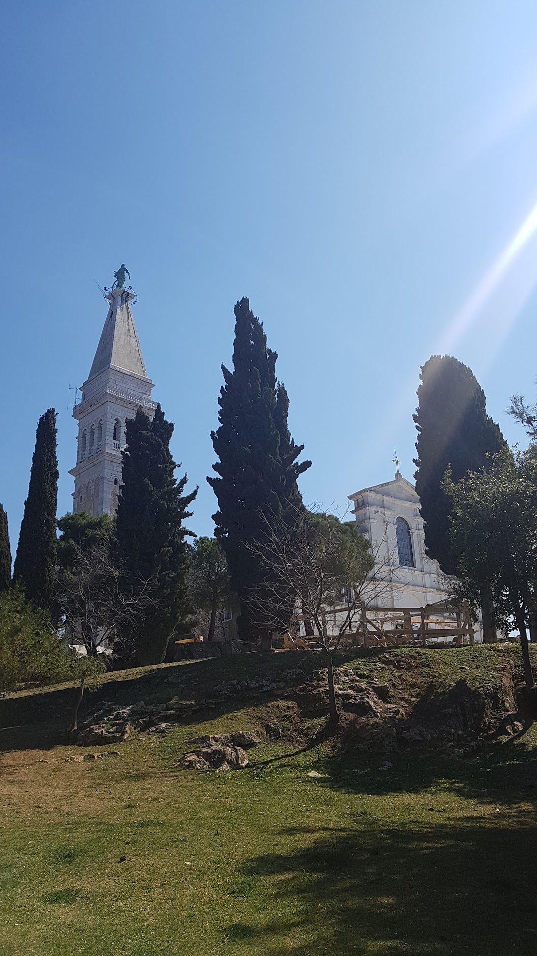 This three-nave church was built in 1736 over the remains of older, early Christian structures. The dedication was originally to Saint George, later to Saints George and Euphemia; the present building is dedicated to Euphemia only. Its façade dates from 1883.