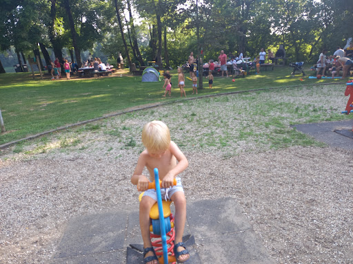 You have barbacue stands, wooden tables and chairs, and if I'm not mistaken small playground for kids and adults. Only bad thing is that river Kupa is pretty shallow in this location and little fast, knee level for adults. But it's great...