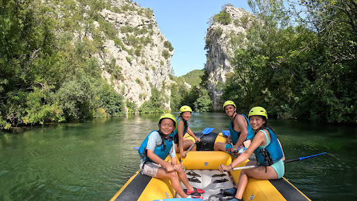 The best day of our holiday! Stunning scenery, gentle paddling, adrenaline rushes, and so many different activities throughout the day. We chose to do our rafting experience with Duje and Selma as it's pretty much the same distance that other tours offer in a morning or afternoon, but Duje makes it a whole day trip with a relaxed start, broken up with lots of breaks for activities, so it never got tiring and we experienced so much more. And what amazing experiences! We started with a delicious breakfast at their house that included courgette fritters, fried dough balls and dried figs, then headed off onto the river. Within ten minutes of paddling we were already at the first rapid, so you don't have to wait long for the excitement to begin. Soon after there's also a rope swing too that you can jump into the river from, which was lots of fun. The rapids are exciting and come fairly frequently, and even the harder ones are fine. There's one that's more difficult about halfway and Duje does that by himself, whilst we all either went through a cold water cave or bypassed the cave on an alternative path. I can only swim a very little, but Duje kept me at the back near him to keep an eye on me and it felt so safe I even joined in floating down a stream in the river on my back - a real highlight for me! There was plenty of other fun - cliff jumps, spinning through the rapids, even doing a gentle rapid backwards! You can definitely paddle at a gentle pace, which makes it suitable for all ages, but with great adrenaline rushes too. I have had some back issues in the past and had some concerns beforehand about whether it might be too much of a strain, but Selma reassured me I'd be fine, and I could take whatever breaks necessary and even sit in the boat and not paddle at all if needed. My back was completely fine as there's so many fun breaks (plus a delicious picnic stop for lunch) we were never paddling for more than 10 minutes at a time without a rest of some sort. Plus, it's possible to take breaks all the time even during the paddling stages. Because of the time we started, we mostly had the river to ourselves, so the day felt like a very tranquil and private experience. We finished off back at their house with more snacks and picking peaches from a neighbour's tree. Really amazing experience and...