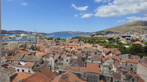 I have been touring a few coastal cities and also climbed several bell towers. Trogir bell tower is the most neglected and worst of all. People at gates only checking if visitors have tickets. Thats their soal responsibility. They are giving a damn about anything other. The stairs are very shallow-narrow and dark. Thick and heavy people certainly face trouble and elders would too. Same exit and entrace and there is no control at the gates whatsoever. Helps like strong bars or poles to hold are absent, and there isn't even a rope to stir /alert others. If one isn't facing people coming from the opposite direction, it would be a golden chance. I myself had to go back while descending because a group of fellow visitors were climbing to the top. Regarding the views, it was good; however, because the tower is quite slim and not very tall, I can't say the views are really something that can't be missed. I hope the authorities should take this seriously.