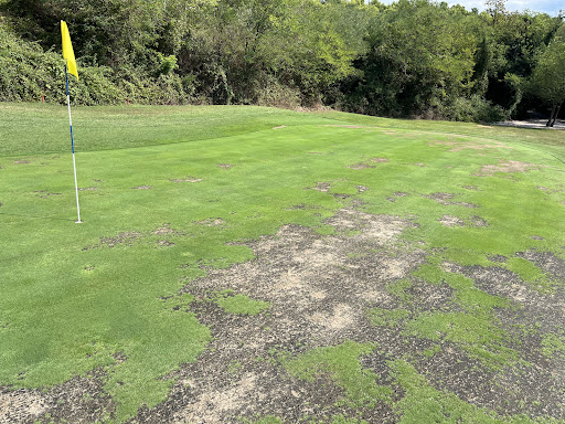 Fairways und AbschlĂ€ge: Sie waren uneben und voller kahler Stellen, teils wie ein Acker. Es schien, als ob der Platz seit Wochen völlig falsche Pflege erhalten hĂ€tte. đ€ŻDas Gras war an vielen Stellen ruiniert oder komplett vertrocknet. Sauberes spiele war so oft nicht möglich!