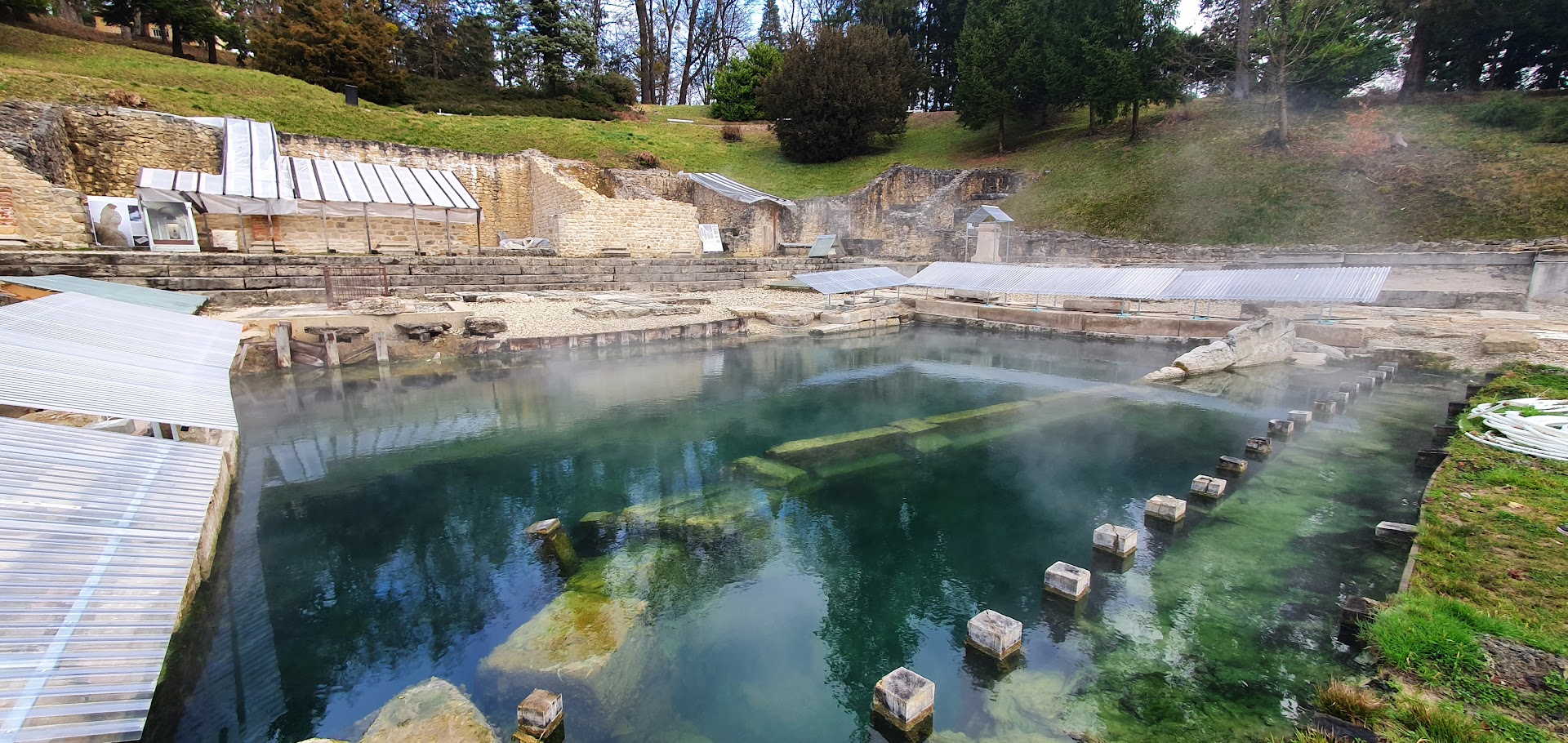 Hot springs and pool with sauna remains from Roman era. There is a museum nearby but it was closed. Also you have pictures of reconstructed original buildings and info about history and various stages of excavations. To the north there is a park where you can enjoy in the shade of big trees. During summer there is a festival where they reenact the Roman times and hold Roman games, various workshops and present dishes...