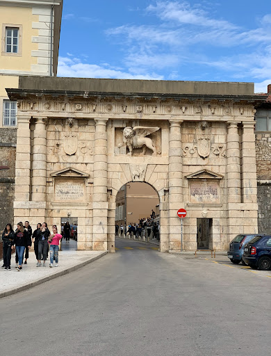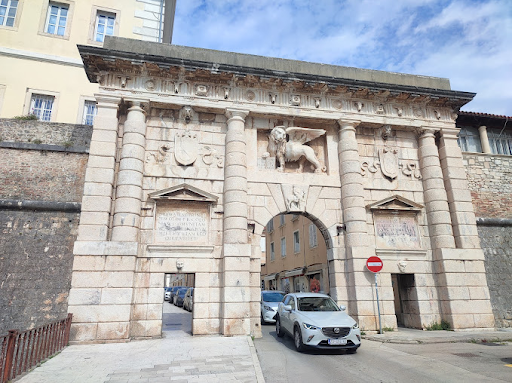 Design: • The gate is adorned with elaborate carvings, including a central triumphal arch flanked by two smaller arches. • At the top, it features the Lion of Saint Mark, a symbol of Venice, signifying Zadar’s importance as part of the Venetian Republic during that time. • It also includes decorative elements such as coats of arms and inscriptions. Function: • The Land Gate was strategically positioned as part of the city’s defensive walls, which protected Zadar from Ottoman attacks. • It connected the city to the mainland via a drawbridge over the Fosa, a narrow moat that still exists today. Cultural Significance: • Today, the Land Gate is a preserved part of Zadar’s UNESCO-listed Venetian fortifications. • It stands as a symbol of Zadar’s rich history and its strategic importance in the Adriatic during the Renaissance period.