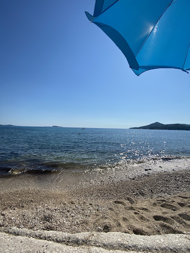 We came to the beach at after 13 o'clock. There were few people on the beach, so you have your own peace. Umbrella costs €8 and one sun lounger costs €10. The beach was rocky, so I recommend water slippers. However, I went without water slippers myself, so that's fine too. The water was clear, but not as clean as elsewhere. There is a free shower. There are also restaurants and a mini market...