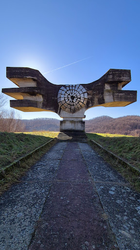 The monument stands about 10 meters high and 20 meters wide. It features dynamic concrete volumes with a metallic sun emblem at the center, symbolizing unity and the spirit of the fallen heroes. The site was a formerly significant Partisan stronghold with hospitals and a resistance headquarters during the war, making the monument's location...