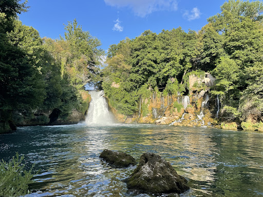 The hidden gem of the river Krka. If you have the opportunity, be sure to visit this little piece of paradise. Surrounded by lush green vegetation and fast waterfalls, the remains of old mills that people used to produce flour can still be seen. Slightly braver adventurers can crawl into the old ruins and experience up close all the charm of this place. In the summer it is possible to bathe, who can stand cold water. The river is so clean that you can drink from it. We had a great experience coming here with a tractor from the nearby village...
