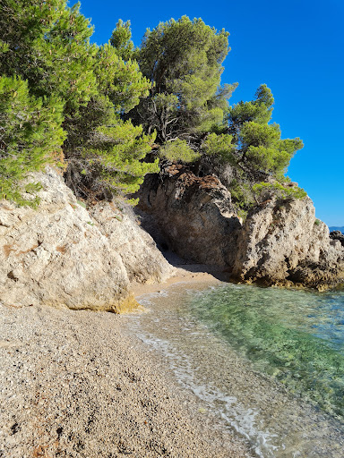 A beautiful beach that is challenging to get to. ✅️✅️ The beach is really beautiful! Big round pebbles on the beach and smaller pebbles in the water. It's very comfortable to get in and out of the water. Water is crystal clear! But it's also a bit cold. Excellent for swimming and for diving. ✅️ There is a big pine providing shade. ⚠️ The road to the beach is narrow. If two cars need to bypass each other it will be very difficult! And that goes on for 4km. ⚠️ When you come near the beach there are wider parts of the road you can park on. There is no parking lot. There are also not a lot of those wide places, around 10 cars can park on those and that's it! ⚠️⚠️ The beach is difficult to access. If you have a baby stroller, or children younger than two, just forget about going there. Also don't go there if you have any mobility problems. The effort is not worth the rewards. There is a goat's road that can lead you there, and also a path barred by "do not trespass " ramp. My suggestion is to just ignore the sign, get all the way down till you get to a small house, and just left of the house is a narrow path that will lead you to the beach. That road is less difficult than the other one. ➡️ If you don't have children, and are not in a wheelchair, be sure to visit....