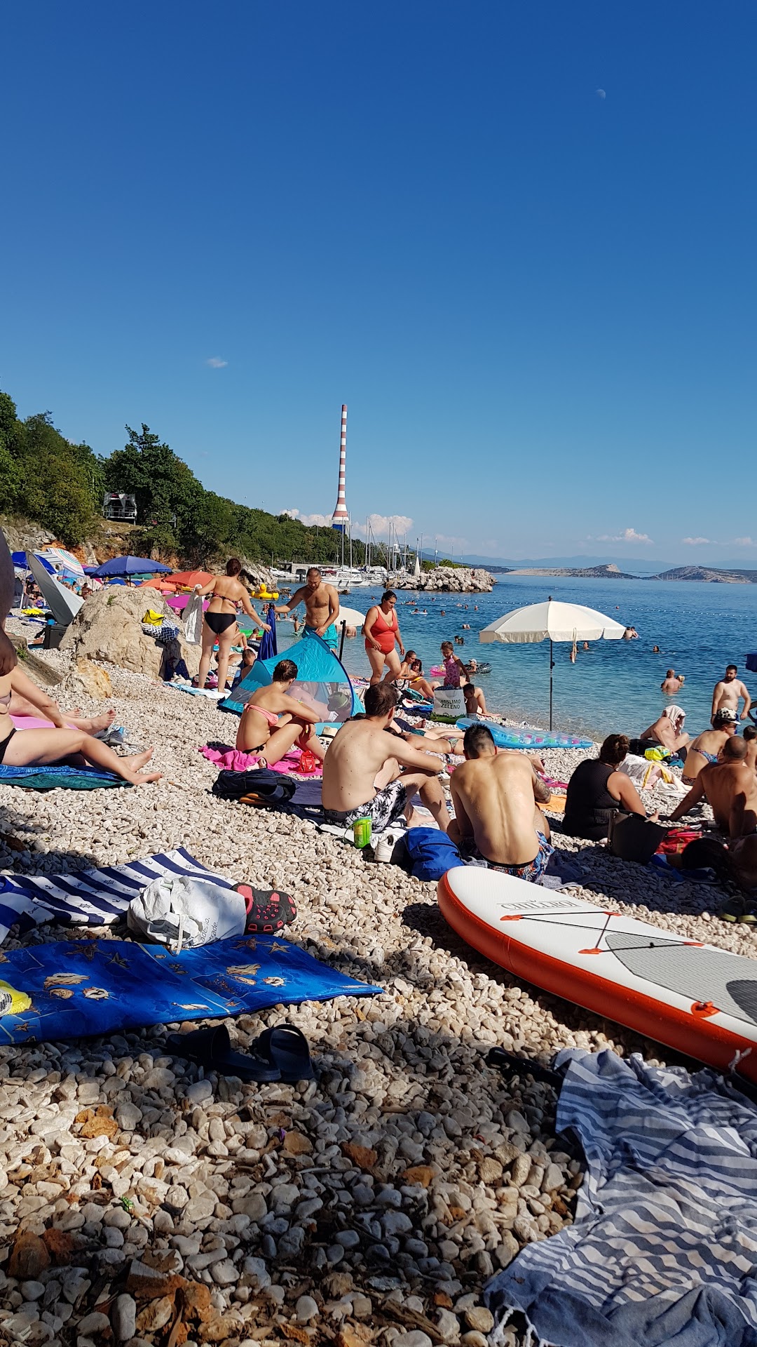 The names of Croatian beaches should be changed by deleting "beach" to "rocky shoreline" as there really is no traditional beach with sand that we have found in this part of Croatia. The waters are crystal clear, are very beautiful and extremely chilly in the morning hours, even in August, due to fresh water springs and thermal clines. The water warms up in the afternoon, though.
