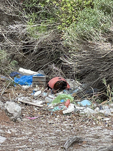 Sadly as others have said it seems to catch the rubbish which comes in from the water from who knows where. I suspect it is from far away as there isn't any rubbish locally or on road to it.