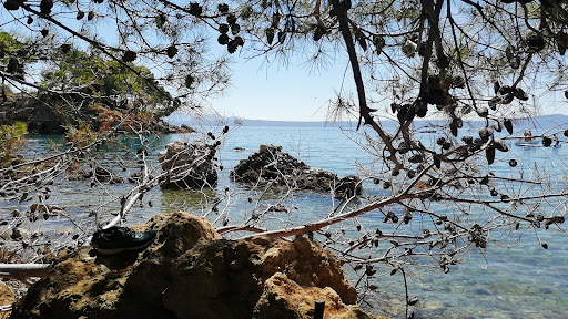 Nice beach with separated small natural bays. Trees spend shadow. Good for snorkeling and swimming with dogs or kids where not so much tourists roam around and get disturbed especially by dogs/animals. Cliffs up to 9m to jump. Deep and flat areas. Pebble beaches. No sand but is comfy. 4 stars because no sand but still recommended. Good possibility for FKK. Natural wild spots. Fällen trees don't get removed which ads...