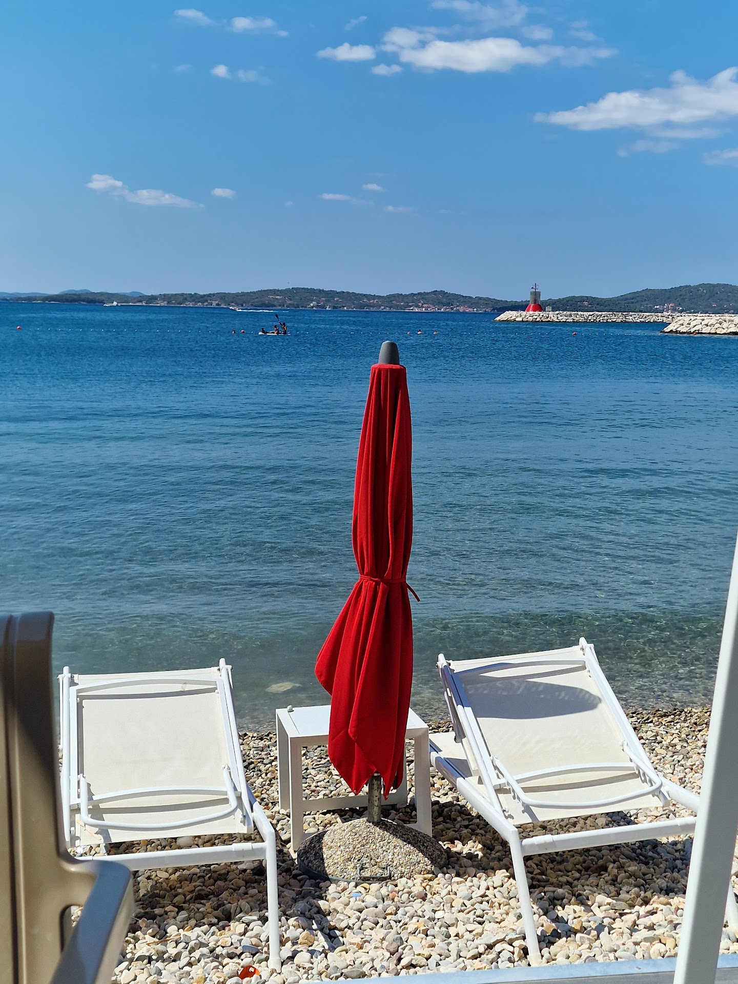An der Bar kann man sich überdachte Stege für den Tag mieten , die ziemlich teuer sind. Die Bar wurde ans Ausland verkauft , einheimische Kroaten arbeiten dort. Auch kann man dort in der Nähe der Bar Liegen an mieten.