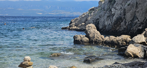 Beach White beach with medium/small pebbles. Nice small bay with clear sea and view on the mountains on the mainland.