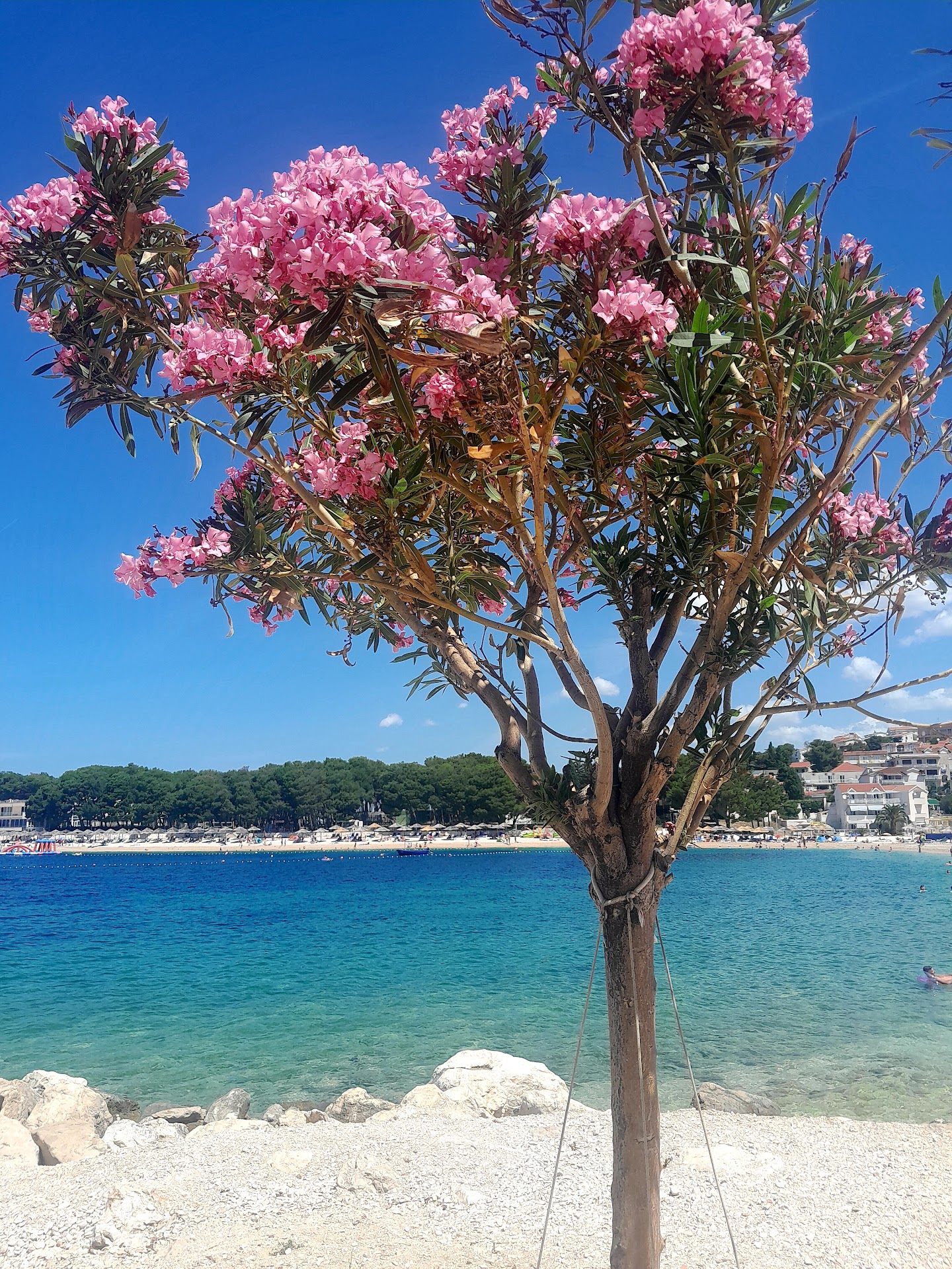 Read moreZdjęcia są z plaży na półwyspie hotelowym od strony otwartego morza. Plaża zapewnia piękny widok na otwarte morze, jachty, oraz miasteczko. Na plaży dostępna leżaki, prysznice, toalety albo publiczne na żetony, albo przy hotelowym barze również płatne. Mały bar na plaży z kawą i drinkami, restauracja hotelowa Róża Wiatrów z pysznymi burgerami, fajnym widokiem na Primosten i morze oraz przystępnymi cenami (niestety fatalna obsługa i klejące się stoliki i fotele). Jest to moja ulubiona plaża w Primosten, jest długa i szeroka, leżaki nie są ustawione przy samej wodzie i jest na niej sporo miejsca nawet w szczycie sezonu. Zdjęcia sz początku sierpnia 2025 i było bardzo dużo miejsca nawet w chorwacki długi weekend. Wynajęcie dwóch leżaków z parasolem kosztuje 20euro, a pojedynczy leżak 10 eur. Nad plażą jest las piniowy, jeśli ktoś woli leżeć całkowicie w cieniu. Można sobie tam zawiesić hamak. Na plaży są również wypożyczalnie sprzętu wodnego, baza nurkowa, wypożyczalnia skuterów i innych wodnych atrakcji. Kamyki dość drobne, ja jestem przyzwyczajona i od lat już nie biorę tam obuwia do wody, ale jeśli nie lubisz chodzić po kamieniach to trzeba je mieć. W wodzie nie ma jeżowców i jest bardzo bezpiecznie. Natomiast bardzo często wieje wiaterek z zachodu więc nie jest tak upalnie jak na innych plażach. No i są często fale, czasem całkiem duże jak bardzo chorwackie warunki, przez co dzieciaki mają tu dobrą zabawę. Z uwagi na często wiejący wiatr jest też trochę osób na kite'ach. Moim zdaniem jest to jedna z najlepszych plaż w całej Chorwacji z uwagi na otwarte morze, niesamowicie przejrzystą wodę, szerokość i długość plaży, wolne miejsce i przestrzeń nawet w szczycie sezonu, czystość na plaży (plaże na Makarskiej wypadają kiepsko w porównaniu z tą- byłam kilka razy więc mam porównanie). Oczywiście fakt, że jest w sercu tak pięknego miasteczka też robi...