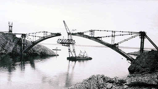 Bridge was built in 1968 by Belgrade company 'Mostogradnja', financed by exYugoslav Republic Croatia and Yugoslav National Army. It has lenght of 302 meters, with arch of 193meters, and at the time it was one of ten largest bridges in the world. During Croatian War for Independence in early 90's bridge suffered heavily damages, and one of the heaviest attacks from sky occured on November 8th. 1991. At result few enemies MiG's was taken down during attack. Three civilians were killed during attack. During war It represent strong connection between Croatian mainland and Dalmatia, and in period 1991-1993 more traffic has used this bridge then all years before since 1968 when bridge was opened.