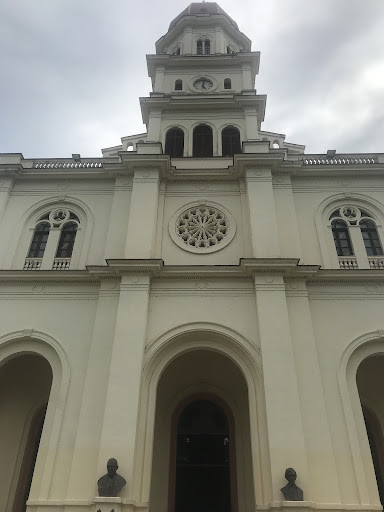 The Basílica Santuario Nacional de Nuestra Señora de la Caridad del Cobre, also known as the National Shrine Basilica of Our Lady of Charity of El Cobre. It is located in the village of El Cobre, near Santiago de Cuba. It is a 3 aisled church on the hill "Cerro de la Cantera" and is linked to the village by a flight of 254 steps. It has a central bell tower and two side towers crowned by red-brick domes. The basilica is under the circumscription of the Roman Catholic Archdiocese of Santiago de Cuba. The basilica was decreed on December 22, 1 This basilica is a significant pilgrimage site for Cuban Catholics and houses a venerated clay figure of Our Lady of Charity, also known as "La Cachita". The current basilica was begun in 1926 and is the only basilica in Cuba. Our Lady of Charity is the patron saint of Cuba, and devotees often leave yellow flowers as offerings. I...