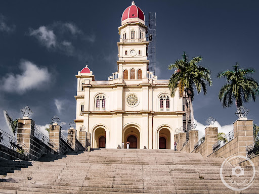 The Basílica Santuario Nacional de Nuestra Señora de la Caridad del Cobre, also known as the National Shrine Basilica of Our Lady of Charity of El Cobre. It is located in the village of El Cobre, near Santiago de Cuba. It is a 3 aisled church on the hill "Cerro de la Cantera" and is linked to the village by a flight of 254 steps. It has a central bell tower and two side towers crowned by red-brick domes. The basilica is under the circumscription of the Roman Catholic Archdiocese of Santiago de Cuba. The basilica was decreed on December 22, 1 This basilica is a significant pilgrimage site for Cuban Catholics and houses a venerated clay figure of Our Lady of Charity, also known as "La Cachita". The current basilica was begun in 1926 and is the only basilica in Cuba. Our Lady of Charity is the patron saint of Cuba, and devotees often leave yellow flowers as offerings. I...