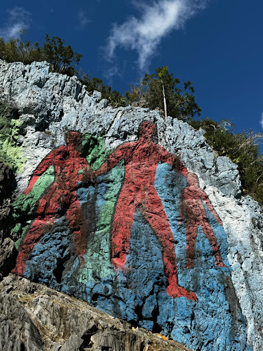 El camino hasta el lugar es una experiencia por sí sola: paisajes de mogotes, vegetación exuberante y aire puro. Al llegar, impresiona el tamaño del mural, que mide más de 100 metros de alto y 120 de ancho. El sitio cuenta con un restaurante rústico con opciones económicas, ideal para descansar un rato y disfrutar la vista, así como una pequeña tienda de souvenirs donde se pueden adquirir recuerdos locales. El trato fue correcto, aunque no especialmente cálido.