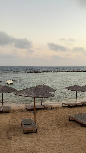 It’s not so easy to get to the beach, but it’s worth a visit. If you come from Aiya Napa, pass the hotel located on the beach (use Google maps for orientation) and take the next possible road to right. There is a kind of wild parking and after 5 minutes walk, you will get to the beach. Next to the hotel beach is the public beach. The water is clear and the beach is a mix of sandy and rocky beach. You might need beach shoes, I didn’t needed them. The hotel has a nice bar restaurant where also visitors are welcome to order pizza for takeaway. The pizza was really delicious, very good dough and nice combinations. The beach has shower and a lifeguard. The sunbeds and umbrellas were unfortunately not available, we were there on a working...