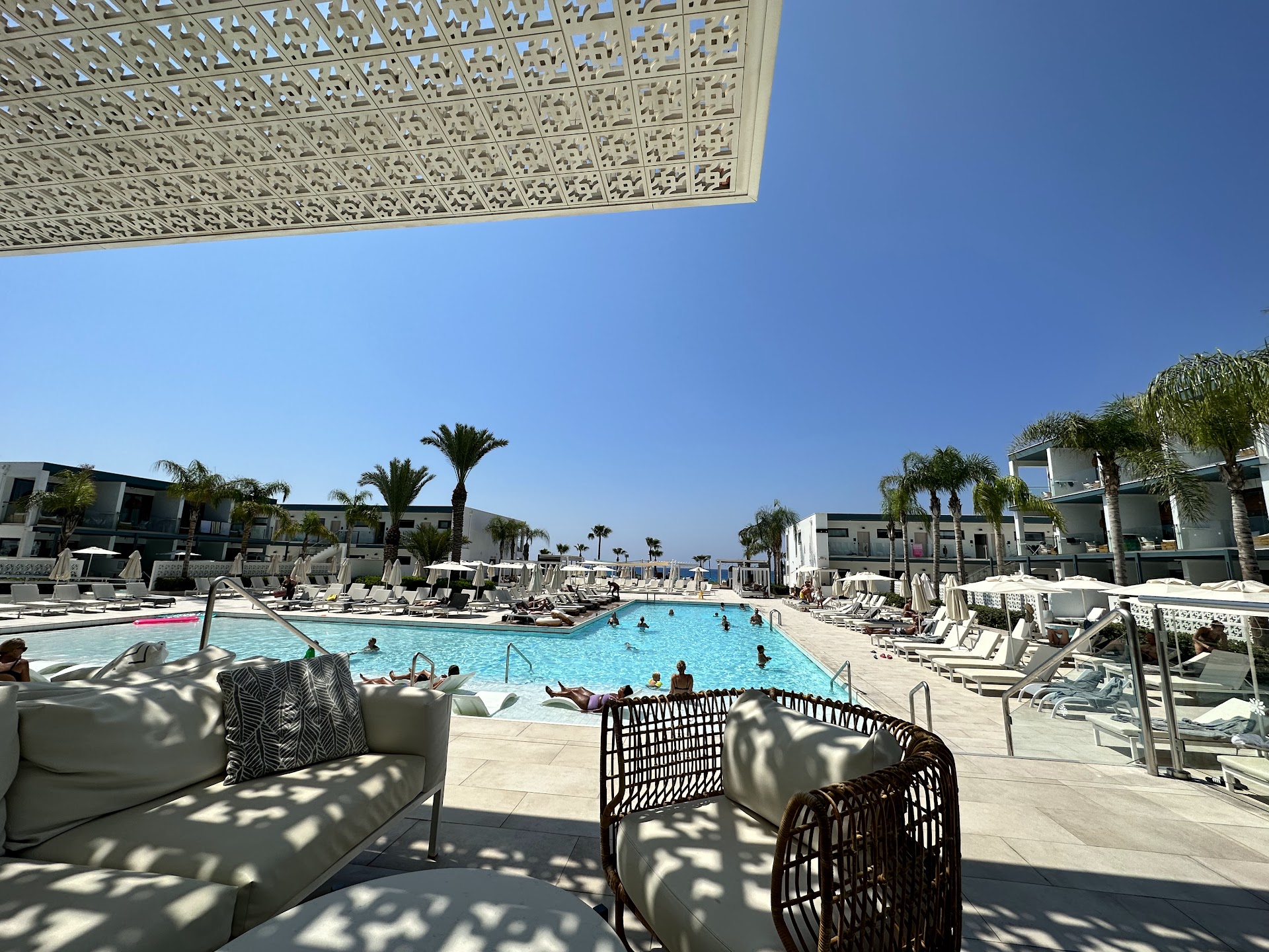 The beach connected to the hotel is completely unusable. Sharp rocks, slippery seaweed and sewage pipes. But the promo photos makes you think there's a beach just a few meters from the hotel, but that's false marketing. Fair enough, there was a pretty fine beach 7 minutes walk from our hotel a bit past the neighboring Sunwing hotel, but we only stumbled upon that by chance, so for several days we thought we had no usable beach nearby.