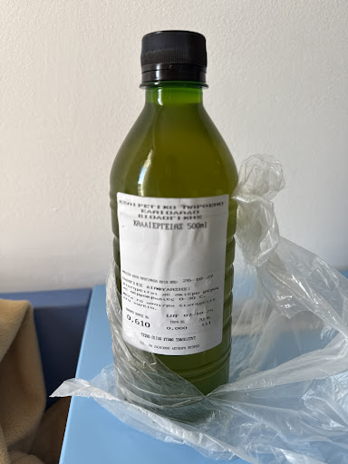 When we entered the shop, the lady skillfully engaged us in conversation, seated us at a table, and suggested we try some olive oil with dry bread. We did, it tasted ok, though the price was rather steep (€15 for 200 ml and €20 for 600 ml). We didn’t ask about the production process - everything was arranged in such a way that you’d assume the olive oil was made on-site, which is NOT true. We realized this only after chatting with a waiter from a nearby restaurant and reading other reviews here.