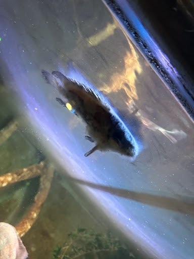 The aquarium part , a dead fish with which looks like fluffy white decomposition on it...