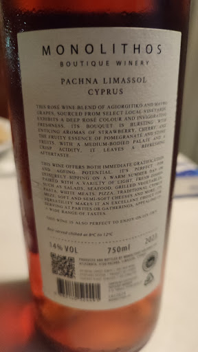 Read moreWe visited the monolithos winery and the wine tasting was amazing with really exceptional wines that surpasses the cypriot standarts! Yes, the vigneron there said himself that as a small family busyness they give emphasis not on the quantity,since they dont have it,but on the quality! As a restless amature sommelier who visited most of the wineries in cyprus,i placed the monolithos boutique winery on top in the island.they even won metals of gold and silver in wine competitions in europe! I will definetly recomend everybody to visit there for the value of moneybas the wine tasting and the...