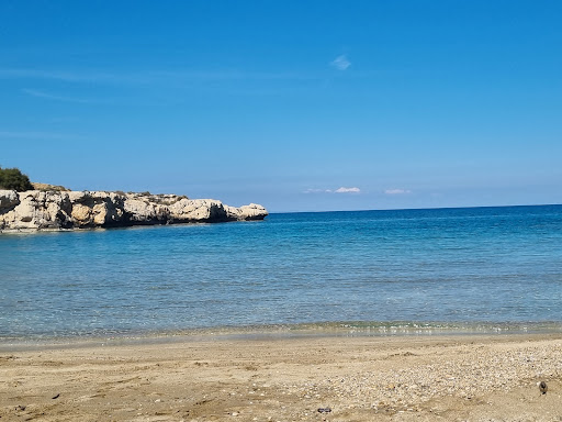Read moreThis is a beautiful beach with crystal clear water. There is a cafe/bar run by a lovely crew who were really happy and chatty. The beach has a toy basket with buckets and spades to use and return which is great for the little ones. Clean toilets and a tap to wash your feet on the way out. There are turtles which visit the beach in the warmer months, apparently (may to September). There are a few caves over to the one side and a mermaid statue sunbathing on the rocks.
