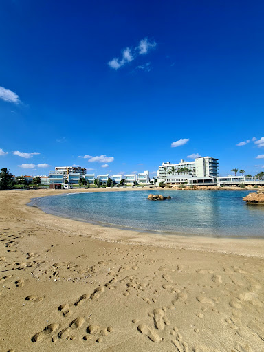 This beach backed into the side of the hotel we were stopping so it was literally on our doorstep and I loved it ❤️❤️. There was plenty of space as well as sunloungers, there were vendors along the walkway for boat trips and activities. They were all really friendly and welcoming, we particularly liked the guy selling corn on the cobs and went there most afternoons 😊 the walk from one end to the other is really nice there are focal points and places of interest along the way. We went to Cyprus in October so we found the sea was actually warmer than the pool in our hotel and it is so clear you can see fishes swimming round...