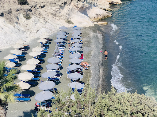 Read moreReally liked it here… had a very calm and casual day. There were very few people on the beaches, so quiet and calm. The black sand is interesting and different from other beaches in Cyprus… especially in contrast with the beautiful white rocks. There’s a nice bar with their own beach umbrellas and sunbeds… the full beds are 40 euros, the wooden sunbeds are 5 euros each, and the plastic beds and umbrellas are 2.50. There’s ample parking nearby, both at the restaurant and at the bar. You can walk through the water along the rocks to the other little beaches along the coast, the...