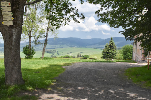Read moreChtěli jsme rychlý výlet na cestě domů z Jeseníků a stavili se zde, jelikož jsem tu už jako malá byla a moc jsem si z toho nepamatovala. Především jsem si nepamatovala, že výstup alejí nahoru není zas takové lehárko :D Ale vyběhnete to nahoru za 15 minut, dá se tam ale dopravit i z druhé strany autem, pokud máte třeba prarodiče nebo nemohoucího člena rodiny. V okolí chrámu nejsou žádné přehnané turistické stánky apod. jak tomu bývá jinde, je tam čisto a klid i takhle v neděli. Krásný výhled do okolí, místo má hezkou atmosféru. Bohužel jsme zapomněli, v jaké době žijeme a neměli jsme respirátory, takže jsme se nemohli podívat do kostela. Zpátky jsme šli cestou kolem Mariánského pramene a byla to moc příjemná...