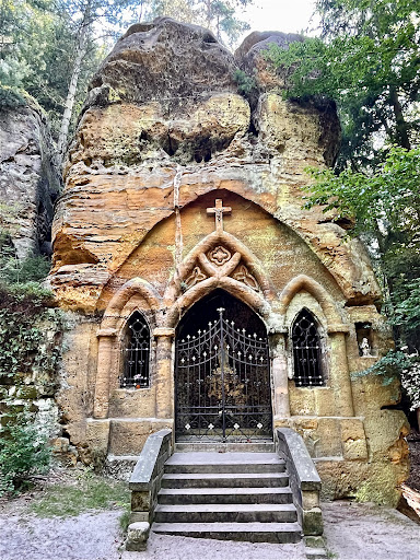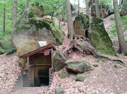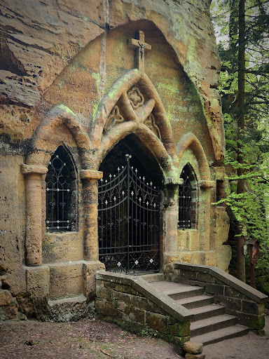 Modlivý důl is an interesting part of a beautiful restored hiking trail between the rocks below Slavíček and Tisový hills on the northeast edge of Svojkov. It also includes the Way of the Cross with 14 stops. This place of pilgrimage is once again open to the public all year round. If you start to climb Modlivý důl from the crossroads Svojkov - zámeček, on the right side of the forest you will see the spring called "U Strážce", founded in 2000. The gorge (with it´s red and green marked trail) is bordered by impressive sandstone rock formations on both sides. After the Second World War the tradition ceased, the pilgrimage site was destroyed and the Way of the Cross disappeared in the 1970s. It was reborn again after 2016, thanks to the initiative of local residents. Originally the cross-stops were attached to the trees, now they are on wooden stands created by a...