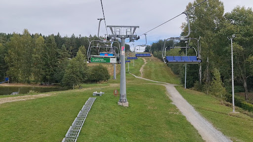 Wir haben uns die "Eroberung" des Berges für einen Sonnabend im Oktober vorgenommen. Der Parkplatz war fast leer und bei Ausfahrt war der Bezahlvorgang am Kassenautomat nicht möglich. Da im Display auch nur Tschechisch zur Auswahl stand, war ich schon etwas genervt. Es klärte sich aber schnell auf, denn die Schranke stand die ganze Zeit offen und so war das Parken sogar kostenlos. Aus Zeitgründen sind wir mit dem Vierersessellift nach oben gefahren, was bei ca. 5 km/h reichlich 10 Minuten dauerte, genau so wie die Suche nach dem Ticketschalter, der 200 m vom Lifteinstieg zu finden war. Während der Fahrt konnte man einen besseren Eindruck von dem kleinen Ski- und Wandergebiet bekommen. Fahräder kann man hier einfach am Lift einhängen und mit auf den Berg transportieren, was eine sehr praktische Lösung ist. Oben biedet sich dann ein schöner Ausblick vom Baumwipfelpfad in die Landschaft. Eine kleine Gaststätte und ein Souvenuerladen befinden sich ebenfalls auf dem 900m hohen Gipfel, dessen Besuch sich auf alle...