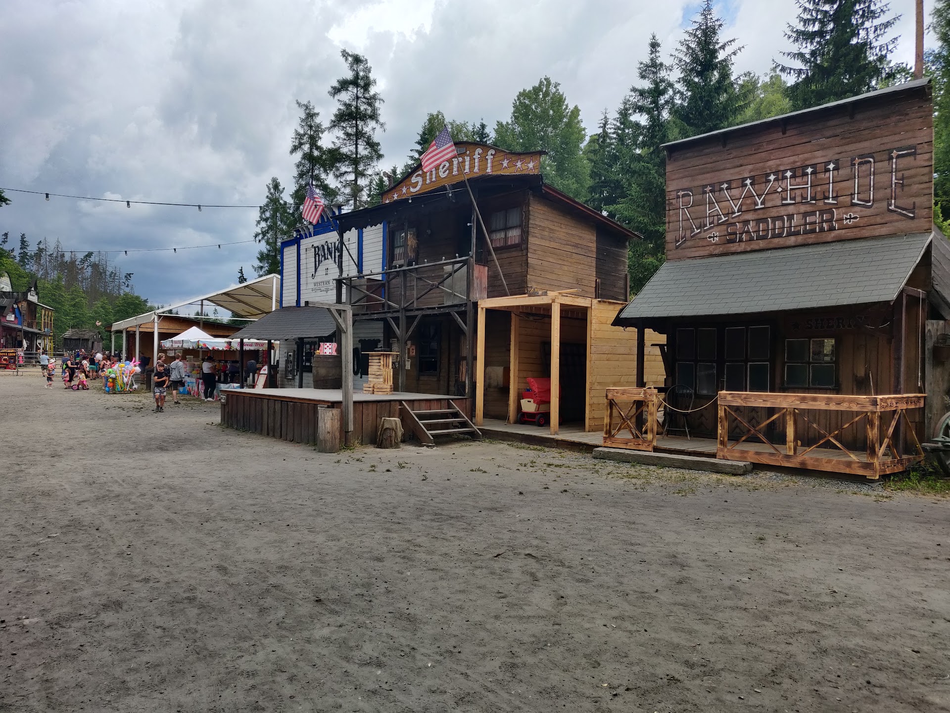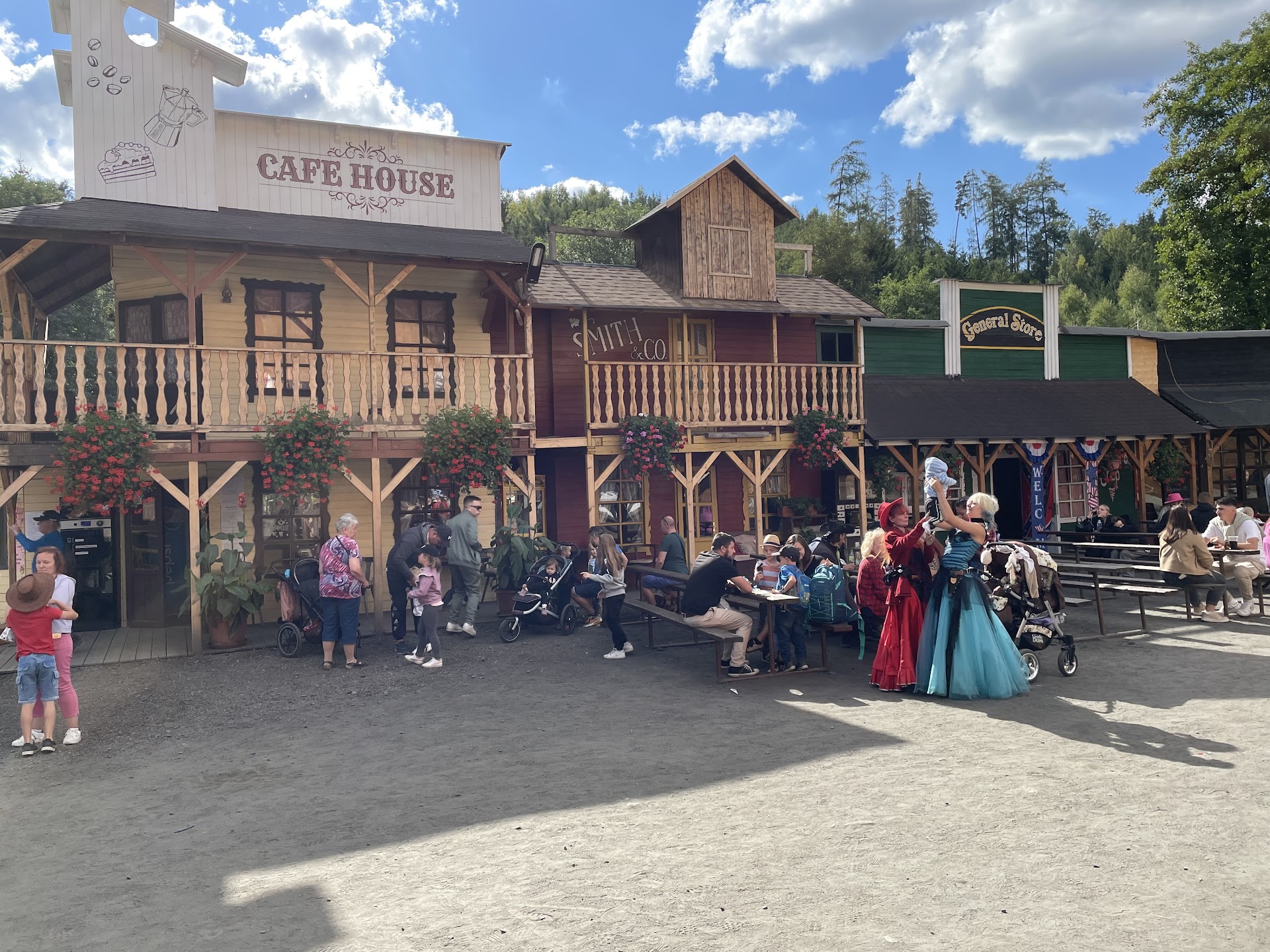 Read moreThe kind of place that kids will love and parents hate. From kids perspective: Awesome! Animals everywhere! Peacocks on the streets, a donkey in the restaurant, big snake to pet, goats, lamas, ducks, chicken, horses and a tiger! We panned some gold, rode a rodeo bull and got balloon animals. From the parent's perspective: Entry for family of four just shy of 1000,- CZK. Above that if you count parking. For that you get access to the place and nothing else. Every attraction is paid separately and they are not cheap. The western town needed complete overhaul 15 years ago. The western show we visited was interrupted by a storm which we waited out in a café with leaky roof. The toys in the playpen looked so dated that we didn't let kids in for hygienic reasons. Animal enclosures with chicken and rabbits won't impress much as well, and the tiger they have here is a sight for sore eyes. Poor animal. Several restaurants here. The one we chose had a warm buffet with no service. Choice of 5 meals of mediocre quality that cost twice as much as they're worth. All the staff seems to be highschoolers on summer jobs. Everything's dated and falling apart. Signs of repair under way in several places. On the good side - place for camper vans and tents looked nice and well maintained. The greenery is obviously managed by someone who knows...