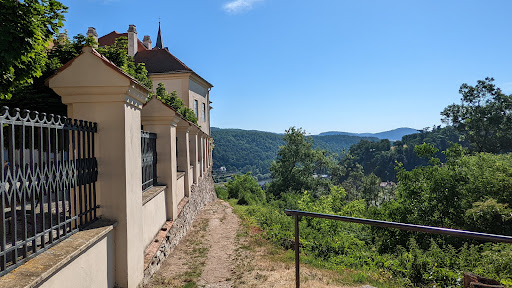 Zajímavost: kamenný pomníček ve stráni jen několik metrů severně od zámku vyznačuje místo křížení 14. poledníku východní délky a 50. rovnoběžky severní šířky.