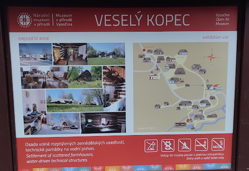 A vězte, i když budou interiéry expozic z nějakého důvodu na Veselém Kopci zavřené, je stále něco prohlížet a poznávat. Všechny objekty nesou informační tabulky a po turistické trase a veřejných cestách si lze areál i objekty zvenčí prohlédnout, stejně tak přírodu kolem řeky Chrudimky a Dlouhého potoka nebo vesničku Dřevíkov (viz Google...