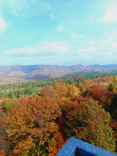 Is a very nice place to visit if you're in the area. The tower is quite tall and open. It's also a cell tower and the very top few levels are thus inaccessible. You can see 360 degrees from the viewing platform. It has information plates with photos telling you what you're looking at. You are able to see as far as Germany, that's actually very close, and to Labe River and České středohoří on the other side. You can see Pravčická brána, famous rock arch formation. You'll need binoculars for it but then you could see even the buildings attached to the side of the rock wall. The tower is on touristic path for both...