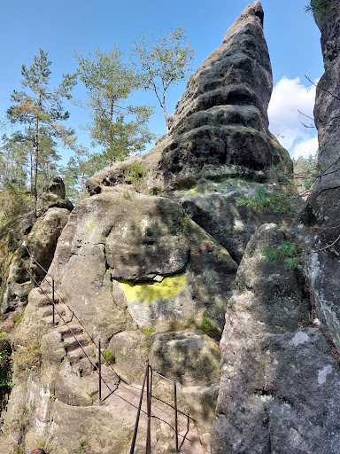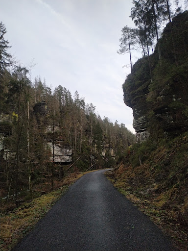 Read moreV Kyjově v blízkosti restaurace Na fakultě jsou dvě parkoviště, jedno menší zdarma, jedno větší za 100,- na den. Stoupali jsme silnicí kolem restaurace mezi chalupami k bývalé staré škole a vpravo. Odtud po Köglerově naučné stezce, tzv. Kyjovskou skalní cestou kolem zbytků hřbitova na místní Kinského vyhlídku a dále po schodech střídavě dolů a nahoru přes Sýrový potok a zase nahoru a dolů až do údolí, kde jsme odbočili po červené vlevo ke skalní bráně Klenotnice, asi 200m. Potom zpět do Kyjovského údolí a vpravo jsme se vrátili zpět k restauraci Na fakultě. Okruh není dlouhý, cca 3km, ale je poměrně namáhavý. Určitě ne kočárek a nevím jak domácí mazlíčci. Cestou je dost schodů, žebřík a rošty. Celkově je to krásná stezka a úžasné...