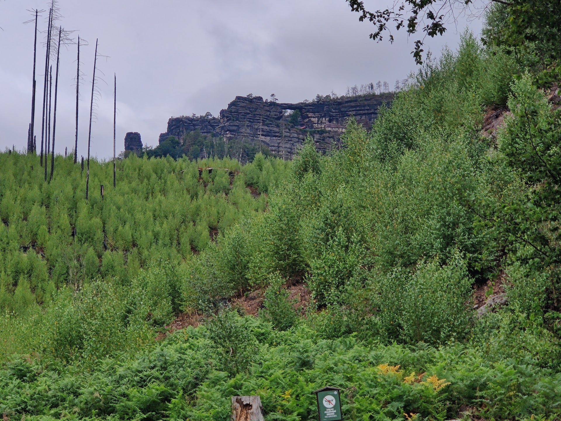 We considered visiting this place but the weather forecast was predicting heavy rain with potential thunder, so we decided to not start the approximately one hour walk one way to reach this point. Parking in the area feels excessive being priced between 7 euro and 12 euro. Just to add to the countless reviews already posted about this place, if you're happy with just catching a glimpse of this archway, albeit from a distance, albeit not having to pay the parking fee, albeit not having to pay the entrance fee, albeit not having to walk for two hours for it, you can perfectly spot it right from the road. Coming from the touristy village with all the paid parking just keep driving passing by the intersection where the people hiking to it would start. After roughly 1 kilometer you will spot an intersection with a turn to the left with two parking slots and a round shaped building. Right from there you can perfectly see the archway right from the road. Coordinates 50,8770777, 14,2855699. Just be aware that you're not supposed to park here, stop here or even enter the parking bays with your car, as indicated by the traffic signs. Photos are taken with a simple phone camera but already show how well it's visible.