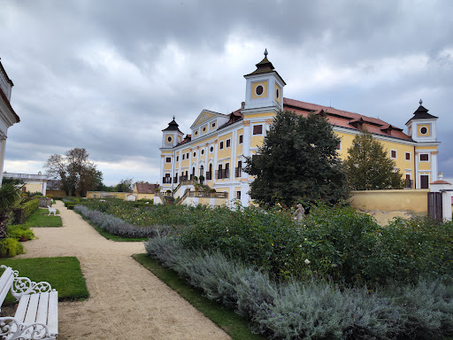 Read moreCelý areál obklopuje francouzská zahrada která od roku 1637 se stala zahradou okrasnou. Od roku 1722 - 1972 přinesla přeměnu na anglický přírodní park s fontánou. V jeho části si návštěvníci prohlédnou altán a umělou zříceninu. Parkem protéká potok, nachází se v něm i rybník s ostrůvkem, vzácné dřeviny, hlavně duby a lípy. Dnes na zahradní terase vidíte obdélníkové záhony růží které doplňují plastiky medvěda s erbem Zástřizlů a boha Januse. Zámecký areál francouzské zahrady doplňuje kašna a lipové aleje, od 19. stol. fontány a letohrádky s...