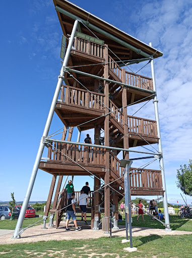 A simple observation tower rising above the vineyards, offering stunning panoramic views of the surrounding area. Below the tower, you'll find a parking lot, public restrooms, and a bistro serving wine. It's a fantastic combination, perfect for a scenic walk or a cycling stop. Definitely...