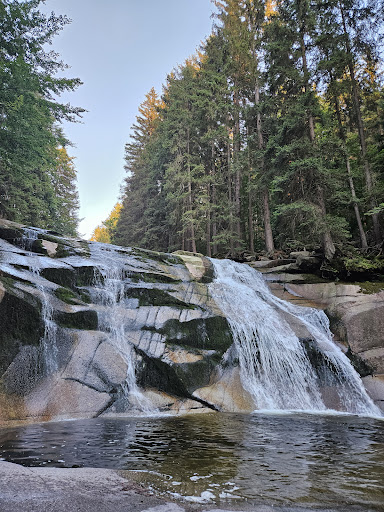 Read moreMumlavský vodopád je nádherný v každém roční období a patří k těm nejvýraznějším, který jsem doposud v České republice viděla. Místo jsem navštívila několikrát a na rozdíl od jiných, mívá vždy dost vody a pojem "vodopád" jde zde skutečný. Mumlavský vodopád je přístupný cestou po asfaltu nebo lesem. Osobně dávám přednost lesem, samozřejmě jen s vhodnou obuví. Pokud jdete s dětmi můžete si cestu zpestřit stezkou. Terén je dobrodružný - kameny, kořeny, menší krpál a po dešti, není pro každého. Můžete se dostat přímo pod vodopád nebo jej pozorovat z lávky, která je nedaleko. Pokud se chcete vyhnout davům, doporučuji návštěvu buď brzy ráno nebo mimo letní sezónu. Zatím nejhorší zkušenost, ale s nezapomenutelným výsledkem, mám z návštěvy v zimě. Přístupová cesta po asfaltu byla dost namrzlá a pokud jste měli štěstí a dostali se na místo, cesta dolů byla už jen pro odvážlivce bez pudu sebezáchovy. Poháněni heslem nevzdat se, šli jsme lesem. Lesní cesta se zpočátku zdála výhrou, ale s přibývajícími kroky, se velmi rychle změnila v adrenalinový zážitek. Skialpinismus mezi stromy po namrzlých kamenech, rychlost - 10 km za hodinu a několik sjezdů po "sedavé" části. K vodopádu jsme se dostali jen na vzdálenost několika metrů. Pohled jak z pohádky - nasněženo a vodopád byl úchvatný, částečně zamrzlý, ale stále se silným proudem a především...