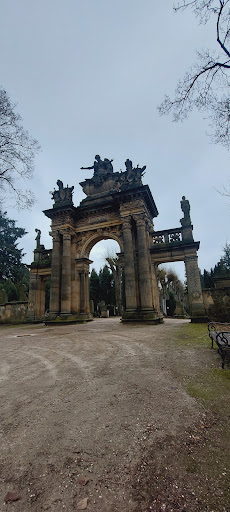 Read moreV letech 1892–1905 vznikla monumentální, 14,5 metrů vysoká vstupní brána podle návrhu Bohuslava Moravce a Antonína Cechnera, profesorů hořické kamenické školy. Bránu následně realizovali zčásti také jejich žáci. Sochařská výzdoba brány je dílem Quida...