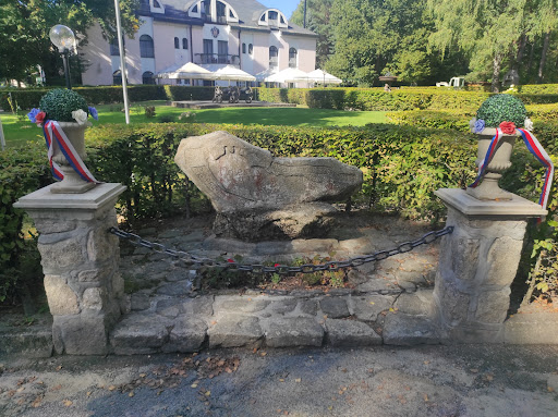 Read moreObčerstvení žádné, hotel asi pro bohatství zavřeno, což je škoda vzhledem k množství přijíždějících turistů na kolech. Kámen evidentně delší dobu bez údržby - ta zvadlá vybledlá vlaječka odpovídá celkovému stavu místa 😕... uvítal bych očištění od mechů, obnovení nápisů a celkově trošku "větší noblesu", když je to ten kámen republiky. Jinak cesty lesem v pohodě, jezdí...